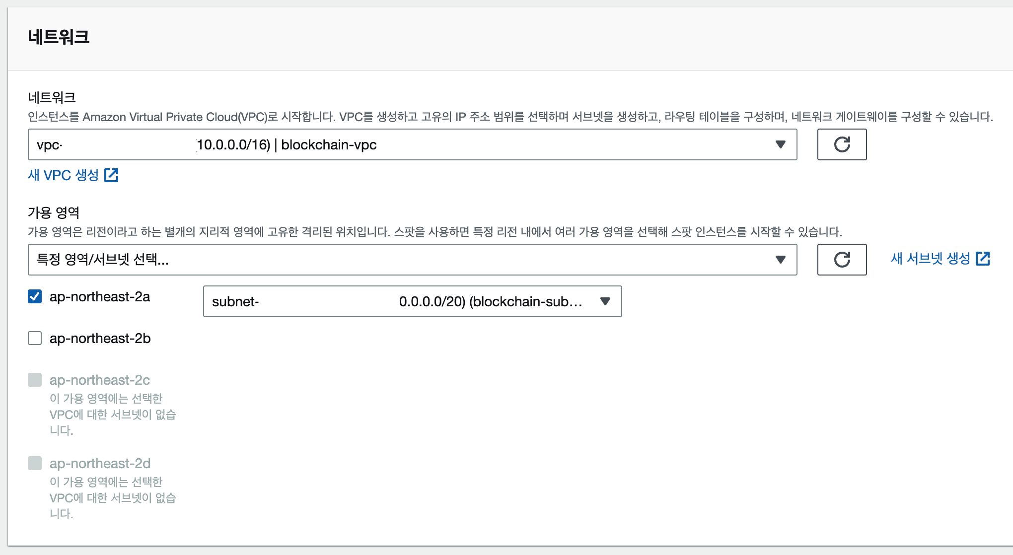 - 네트워크는 외부 통신이 가능한 Public Zone의 VPC 및 Subnet을 선택합니다.