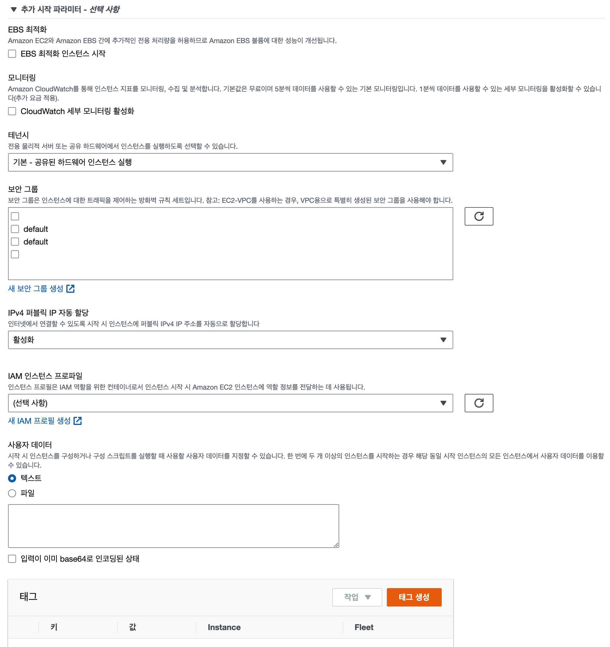 - 시스템 모니터링이 필요하면 "CloudWatch 세부 모니터링 활성화"를 체크합니다.